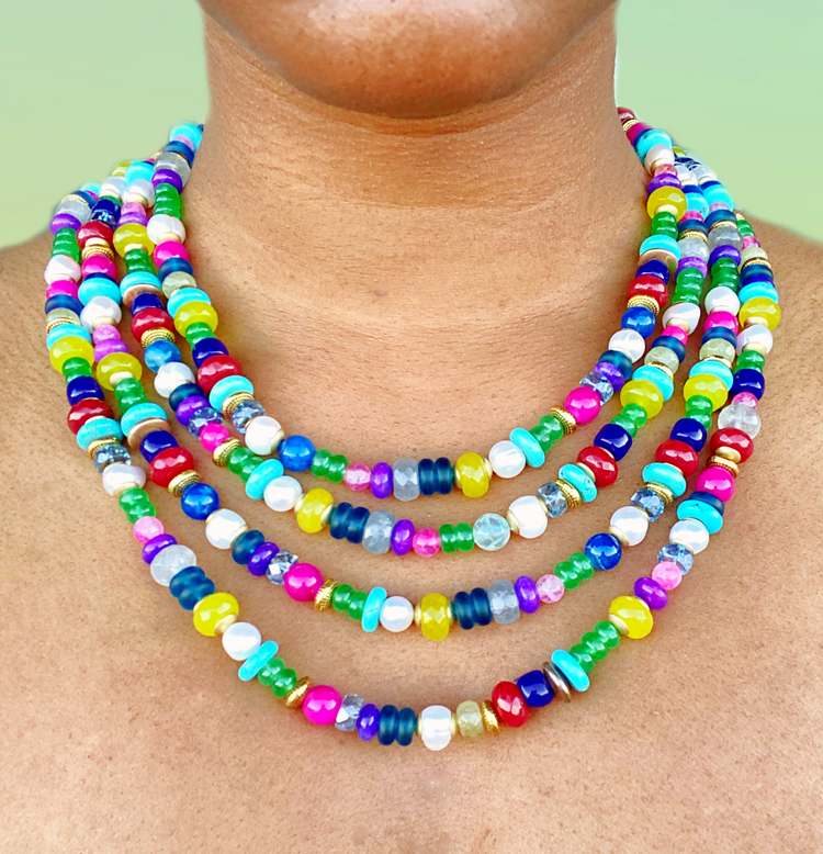 Achieve timeless sophistication with the Jade Elegance Necklace. Luxurious and eye-catching, the deep primary hues and bright pops of color make a bold statement. Perfect for fall, the carefully curated jumbo pearls create a timelessly elegant look that never fails to impress. Dare to be bold and add this staple necklace to your collection!