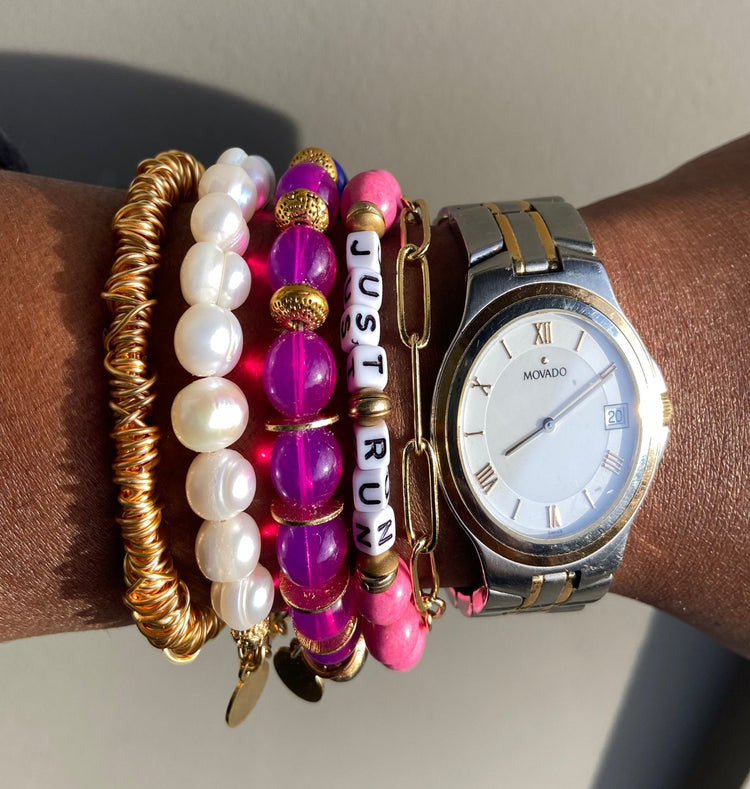 This bracelet is for the women who live for the run—whether you’re part of a run club or hitting the trails solo, running is your escape and your joy. Just Run is more than a phrase; it’s a way of life. It’s about clearing your mind, relieving stress, and making health a priority. Wear this bracelet as a unifying symbol that connects runners everywhere. Celebrate your love for the outdoors, your commitment to self-care, and your passion for running—all in style! Inquire about custom sizing.