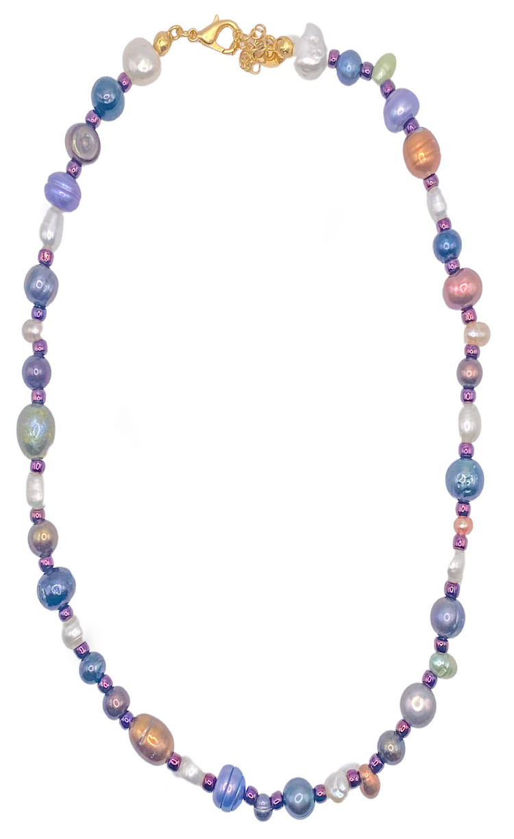 Perfect for pairing with other chain or gemstone necklaces to add a classic feel, or wearing alone. This can be dressed up or down, worn to the office or around town. This mix of gemstones and pearls are truly unique and will be the soft pop of color you need for your wardrobe.