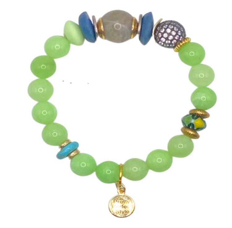 Each piece of jewelry is handmade with genuine stones, metals, and bead findings. Because most of the bracelet components are not mass-produced, color and patterns may differ slightly since they are not man-made products. At Pretty Perfect Style, we do the best job possible at making sure the picture reflects each one-of-a-kind bracelet. If you have any questions about your jewelry, please ask (monica@prettyperfectstyle.com) before purchasing.