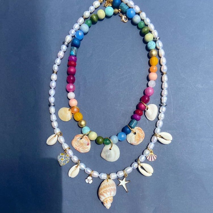 Add a splash of color and coastal charm to your jewelry collection with the Rainbow Seashell Necklace — a playful yet elevated piece featuring real handpicked seashells and vibrant rainbow accents. Inspired by carefree beach days and joyful self-expression, this necklace is the perfect pop of personality for your summer wardrobe.