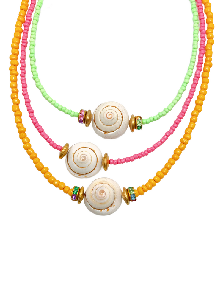 • Gemstones used: Shiva Eye Shell, neon seed beads, resin beads, pave bead